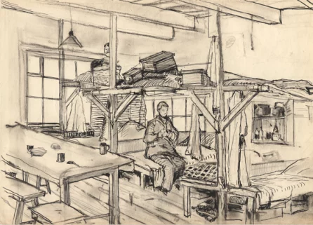 Zeichnung einer Häftlingsbaracke von Iwan Suchanow